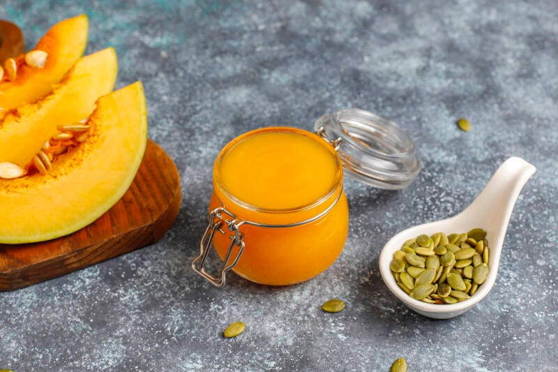 Bei Schwangerschaftserbrechen empfiehlt die Volksheilkunde Kürbiskompott oder Tee aus dem Kürbisfruchtfleisch. Die Übelkeit während der Schwangerschaft lässt nach.